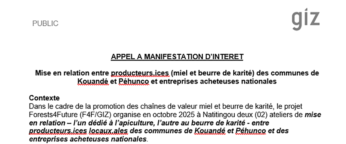Mise en relation entre producteurs.ices (miel et beurre de karité) des communes de Kouandé et Péhunco et entreprises acheteuses nationales