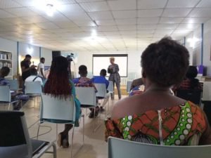 L’intervention de Monsieur Habib MEME s’est focalisée sur les actions de l’ONG Atelier des Griots qui est un groupe de volontaire au service des communautés locales. Lesdites actions incluent l’amélioration de la maison des jeunes d’Akpakpa Dodomin (suscitée par les jeunes eux-mêmes), le déploiement d’étudiants en provenance de Boston pour raconter dans les quartiers, l’histoire des communautés, des histoires positives.
