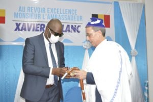 Le Président de l’Association Nationale des Communes du Bénin (ANCB) et Maire de Cotonou Luc Sètondji ATROKPO a organisé ce lundi 25 juillet 2022, une cérémonie d’hommage à l’Ambassadeur Extraordinaire et Plénipotentiaire du royaume de Belgique au Bénin Xavier LEBLANC en fin de mission.