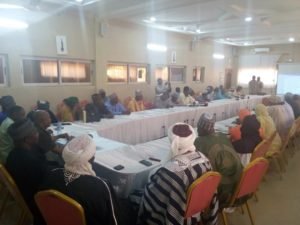 Le maire de Malanville GADO Guidami président de ce cadre, fier de souhaiter la bienvenue aux participants, il a remercié particulièrement le Préfet de l’Alibori représentant le gouvernement pour sa présence effective à cet atelier. Il a également imploré le Tout- Puissant à accompagner le Préfet dans ses actions de développement au profit du département de l’Alibori et par ricochet l’espace Dendi-Ganda. Ensuite, les remerciements du Président du Cadre, le Maire Guidami GADO sont adressés à l’endroit du Président du Laboratoire Citoyenneté, l’un des partenaires qui répond à tout moment aux sollicitations et dont l’appui financière a permis l’organisation de la présente assise.