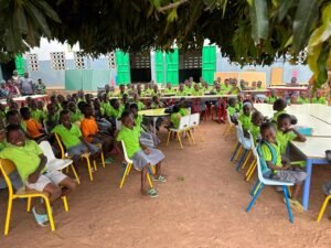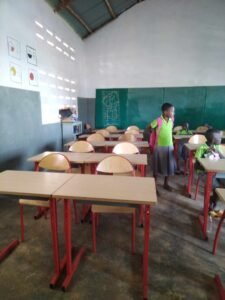 Depuis la création de l’école catholique St Pierre et Paul de Goutchon en raison du fort taux de déscolarisation des enfants dudit village, Emmanuelle Monot et son association soutenues par divers donateurs ont pris l’engagement d’accompagner non seulement la mise en place complète de toutes les salles de classes mais également les élèves des familles déshéritées. En ce début du mois de novembre 2023, elle est descendue au Bénin plus précisément à Goutchon pour équiper les salles de classe en mobiliers (tables et chaises). « Nous avons acquis ces tables et chaises qui font la joie des élèves, grâce à la générosité des écoles partenaires Ste Geneviève d’Asnières et Notre Dame de joie de Meudon depuis la France» a précisé Emmanuelle Monot, présidente de l’association Espéra.